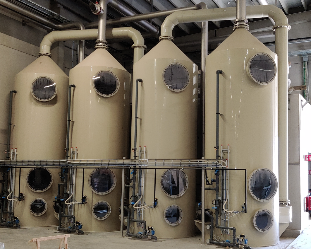 Bij het afvullen van geurende en toxische producten is een doordachte afzuiging en luchtzuivering cruciaal. Daarom ontwierpen en leverden wij maatwerk scrubbers, inclusief het volledige RVS buizentracé, afgestemd op de specifieke noden van de installatie.